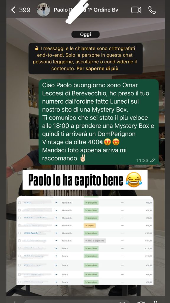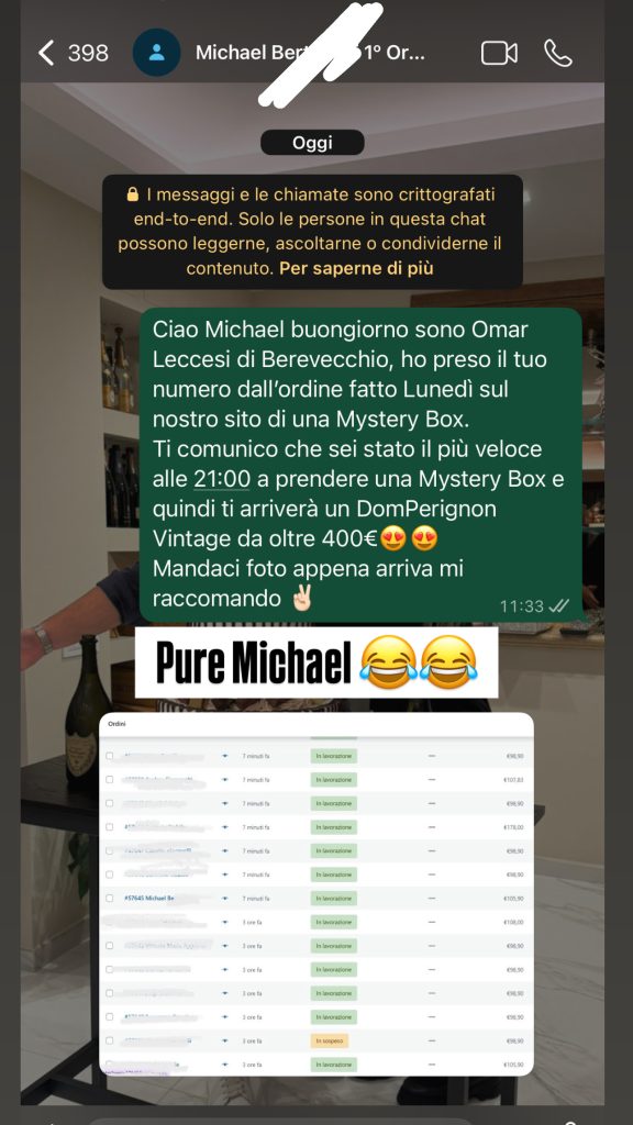 – 1° ORDINE DELLE ORE 18:00 DI UNA MYSTERY BOX – DOM PERIGNON 1992