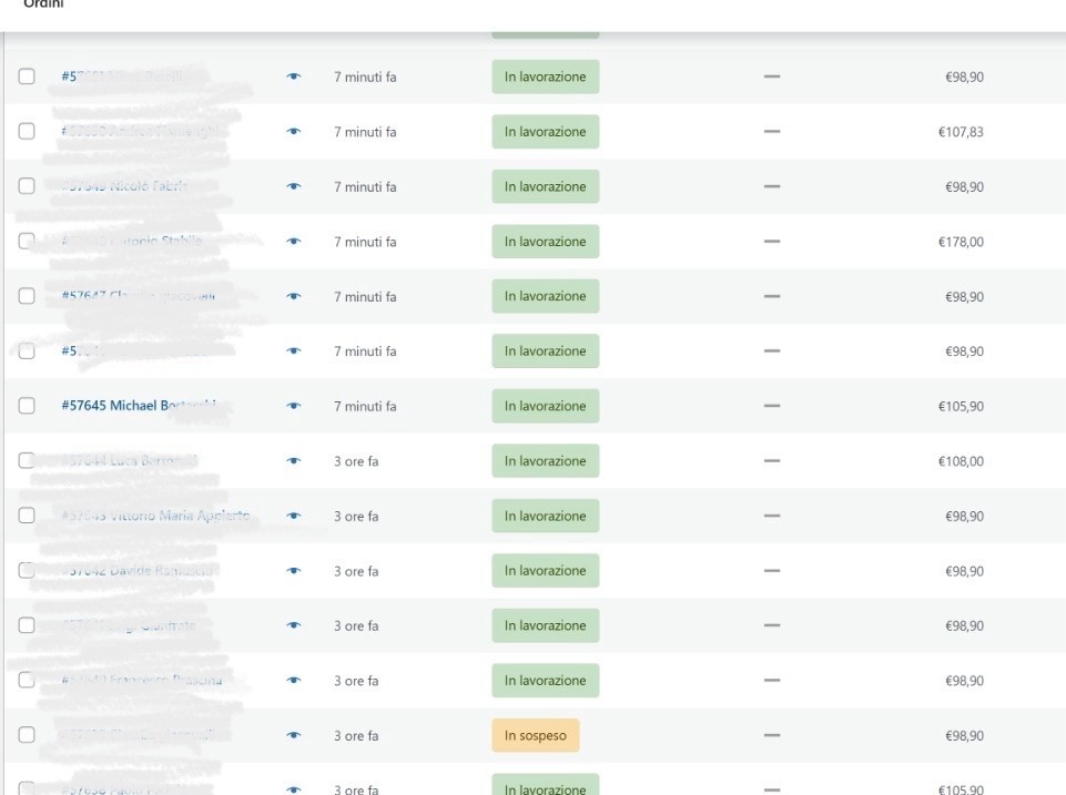 RIPORTIAMO I 1° ORDINI EFFETTUATI DAGLI UTENTI ALLE RISPETTIVE ORE 12, 18 E 21.