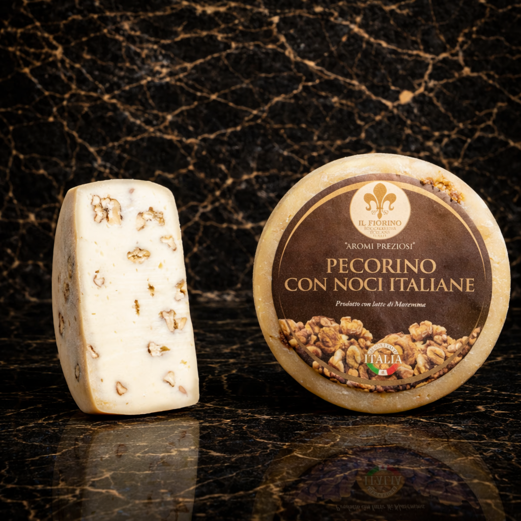 Il Pecorino Toscano con Noci Italiane – Il Fiorino (1/2 forma) è un formaggio artigianale dal gusto raffinato che nasce nella suggestiva Maremma Toscana, terra simbolo della tradizione casearia italiana.